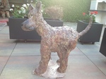 2016Grote hond. Groot en zwaar beeld. Gemaakt van keramiek en verf. Geschikt voor buiten, winterhard.