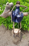 2018Dit beeld van keramiek zit op een tak en is met ijzeren staven verbonden met de houten sokkel. Het beeld van Lijs is geglazuurd met een eigen donkerblauw/ zwarte effectglazuur. Heel fragiel en breekbaar. Door de kwetsbaarheid van het werk is het alleen op te halen uit Drenthe of in overleg te brengen